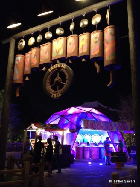 One of my favorite sights caught my eye as I was walking over to Mater’s Junkyard Jamboree. On my way to ride, I got completely distracted by the psychedelic glow of Fillmore’s Taste-In. So much so, that I went over to check it out before hitting the spinning tractors!