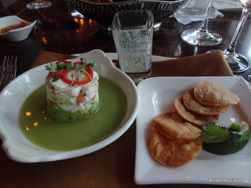 Additional appetizers we have tried are as follows. First up, the Halibut Ceviche, which was part of our fixed menu, special event meal night. It includes avocado and tomatillo-cilantro essence served with crisp plantain chips.