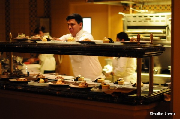 We also felt that the open kitchen (open to our dining room) was a bad choice. It was very noisy and pretty distracting. It was also at odds with the theming. In a restaurant like Napa Rose, which is designed to be very modern, the open kitchen works. At Carthay Circle, meant to evoke days when the kitchen was supposed to be completely invisible, the open kitchen felt like an intrusion.