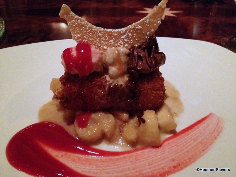 Saving the best for last, we ordered the Fried Banana Split Monte Cristo Sundae on our second visit. This little plate of amazingness consisted of raspberry and chocolate fudge ice creams, and warm caramel rum bananas.