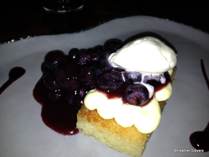 Personally, I love fruity desserts, so I was really happy about all of the seasonal fruit menu items. On our fixed menu night we were brought out two dishes to try: the first was Toasted Lemon Pound Cake with Fresh Marinated Blueberries, Lemon Curd Cream, and Tahitian Vanilla Chantilly. This dish was fantastic; fresh, tart, creamy with the sweet blueberries. Right up my alley.