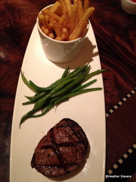 My boys are both major carnivores, so they went with the exact same meal, the Grilled Petit Filet of Beef with Broccoli and Crispy Macaroni and Cheese. However, they switched it up and got green beans and french fries instead of the broccoli.