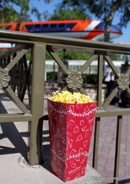 While popcorn is ever-present on both coasts, I couldn’t help but show you this pic of everyone’s favorite treat with the monorail whizzing by! Fun pic, eh?