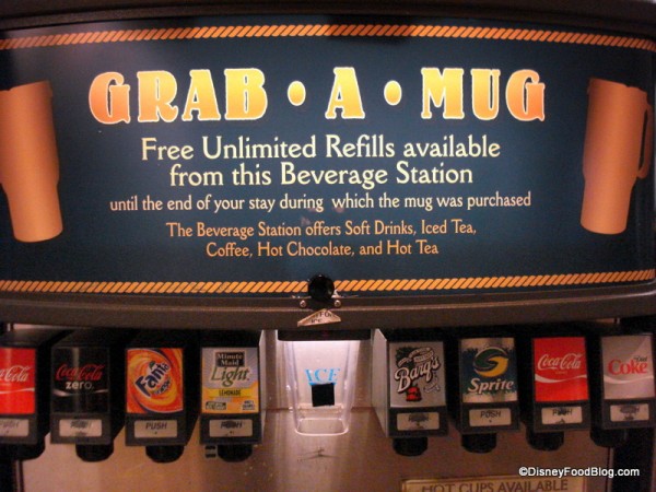 Guests will also find the full Disney beverage set up, comparable to other resort counter service stops around property. Refillable mugs for soda, coffee, and tea are available here.