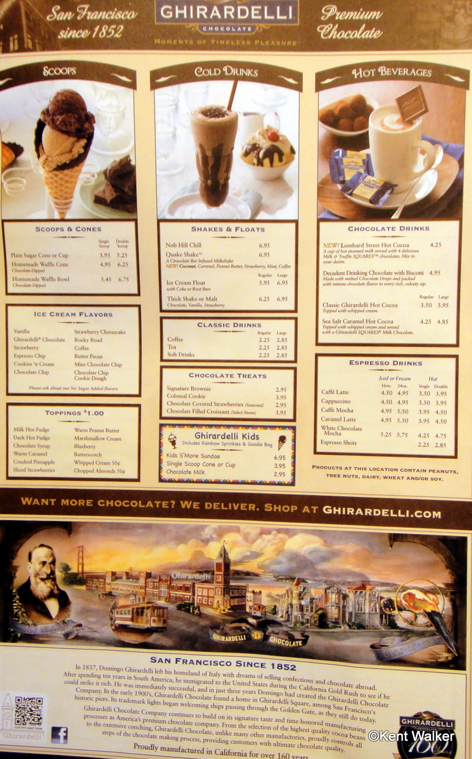 Our family has been to San Francisco and visited the Ghirardelli Square shop, so we knew how good their chocolate, sundaes and chocolate drinks were. Other than the much larger selection of chocolate in San Francisco, the soda fountains are very similar.