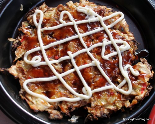 - Okonomi Yaki.Katsura Grill, Epcot. This pancake-like dish has some shredded veggies in the batter.