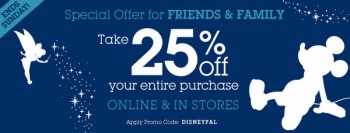 Great news! DisneyStore.com is having a 25% off sale this weekend only. (FYI, my birthday’s only a month and a half away…just sayin’…)