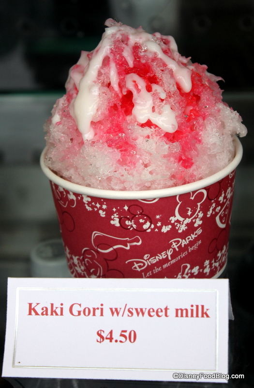I was just reading old posts that I missed and saw this one. I was in EPCOT in June and had the Kaki Gori and was sad to see that they changed the ice. Now it is the same ice as a snow cone where as previously it was shaved ice that really melted in your mouth. The fruit juices were as great as ever, but I was missing the shaved ice…anyone else remember the shaved version?