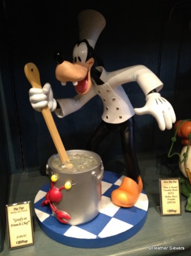 Chef Goofy in “Goofy as French Chef” is stirring up a pot of boiling water while his meal escapes him. The statue is designed by Randy Noble. It’s hand painted sculpted resin and stands 19 inches high. For $199.95, it could be yours.