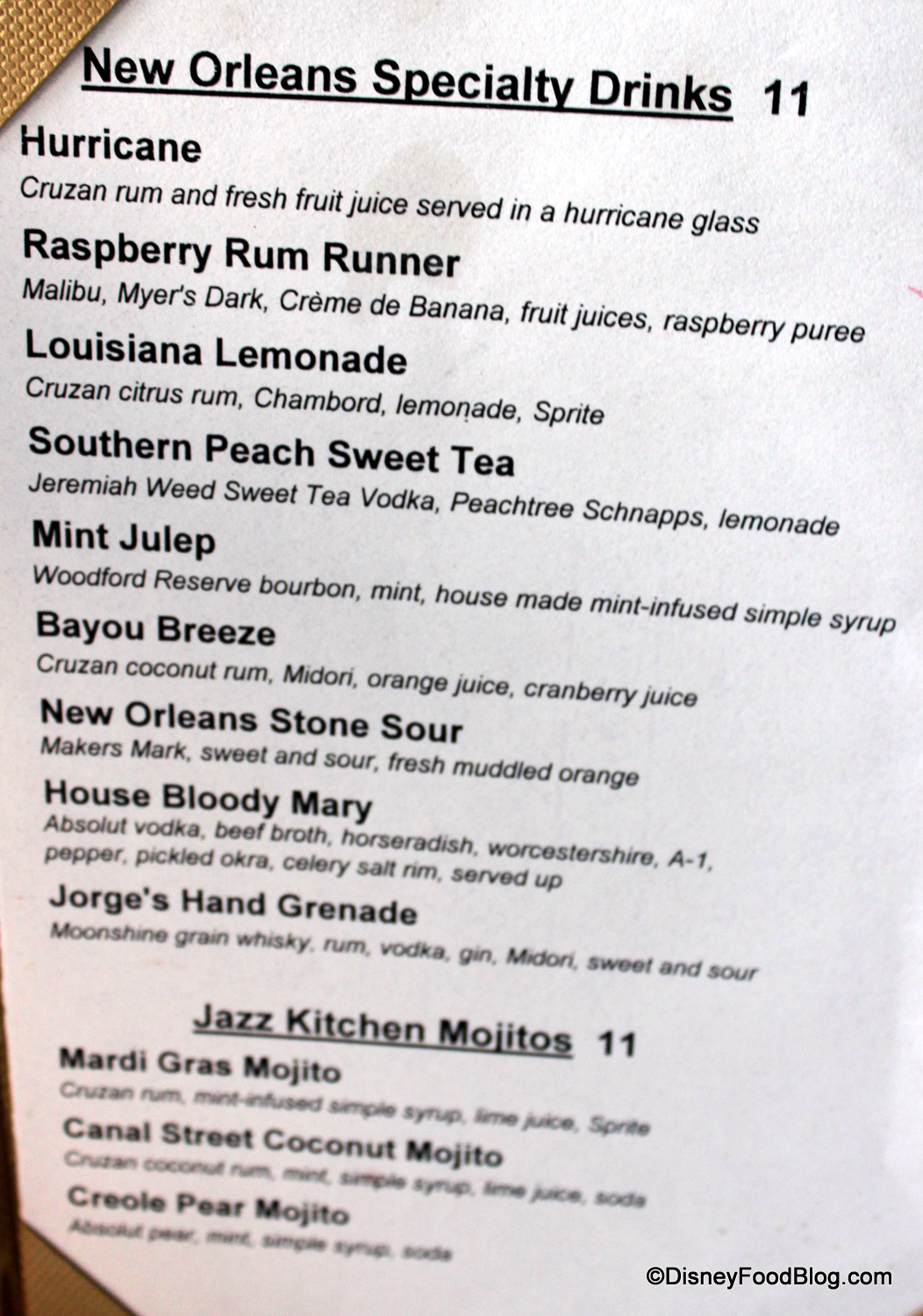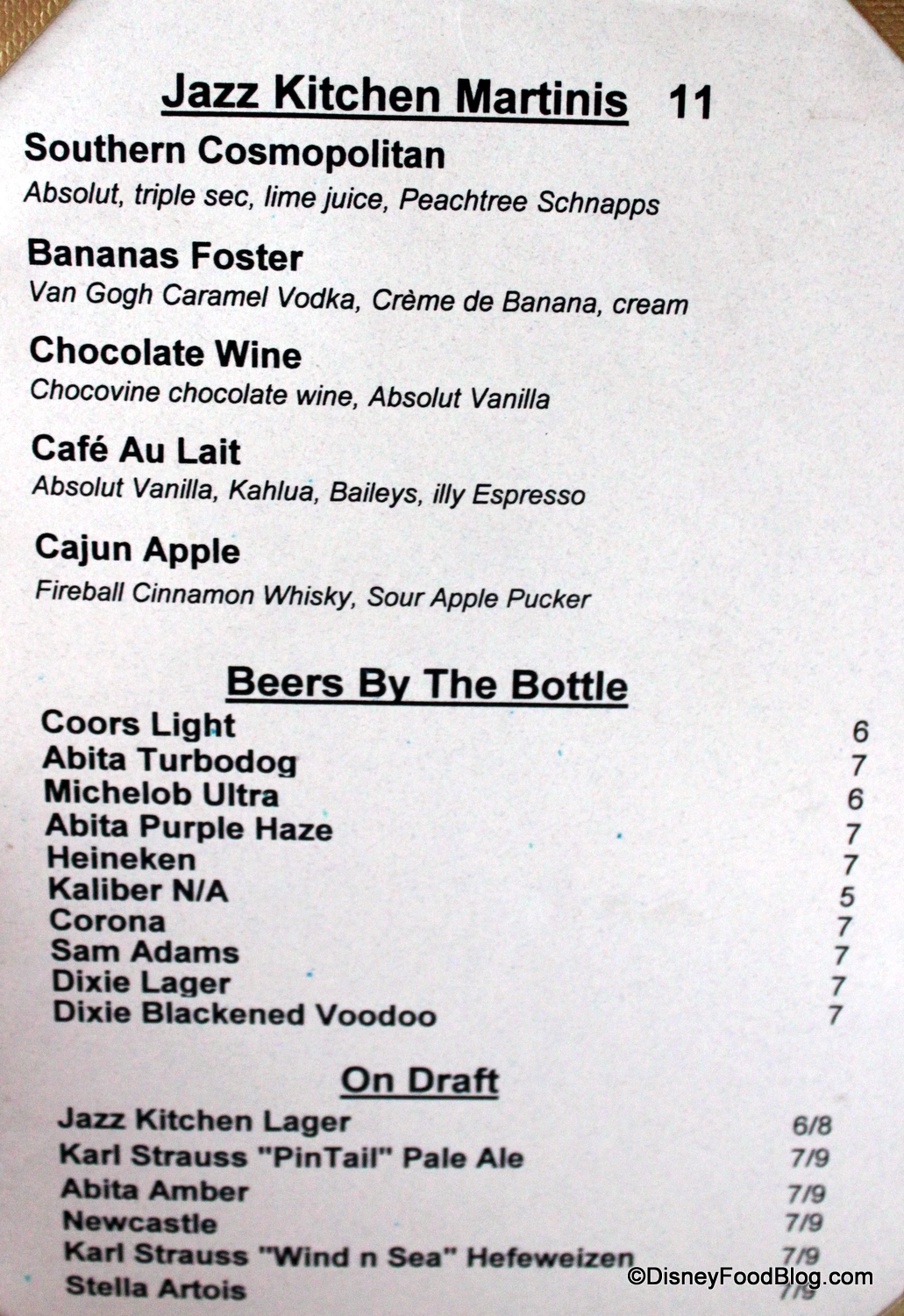 Some flavors that the city is known for also pop up in the form of martinis. Here, you’ll find the Bananas Foster rubbing elbows with the Cafe au Lait. There are a few craft beers from Louisiana as well, ranging from the widely available Abita offerings, to lesser known Dixie Lager and Dixie Blackened Voodoo.