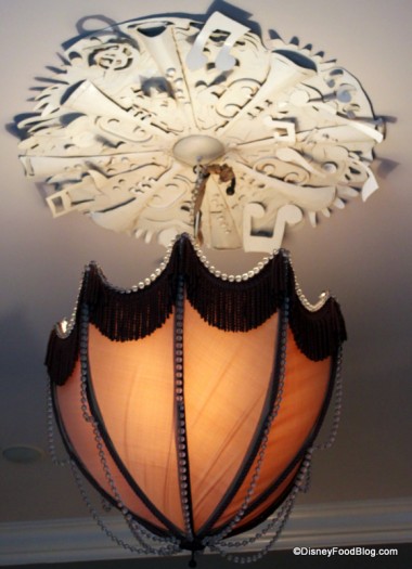 There are touches of whimsy throughout the space, however, that keep the atmosphere from feeling too stately. Check out these lightcovers, which are actually Mardi Gras umbrellas!