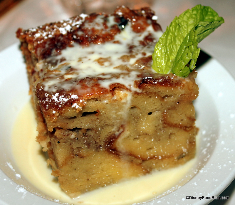 We went with individual portions instead. First up: the creole red velvet roulade, or as I call it, heaven. I consider this to be one of THE best Disneyland things ever. It’s created by enveloping thick, luscious cream cheese frosting (and plenty of it!) in pliant, flavorful red velvet cake; then the whole thing is served in a pool of cafe-brulot creme anglaise. The dessert is as pretty as it is delicious!