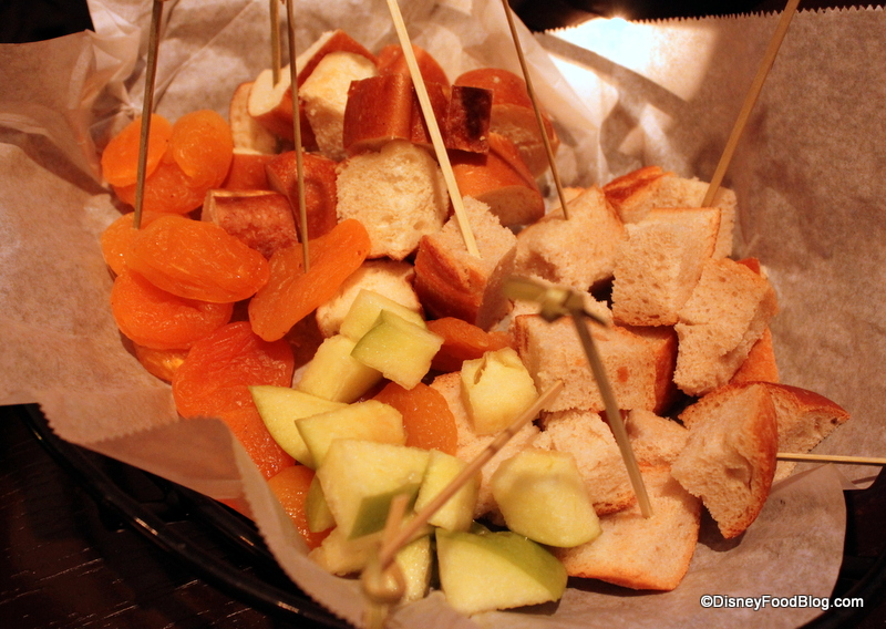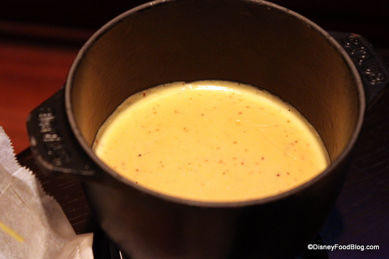 We’ve only stopped in here once, and we parked ourselves on that loveseat with wine in hand! We had already had a big dinner, so we didn’t eat at Territory Lounge on that occasion. But now you’ve got me wanting to go stay at Wilderness Lodge again just for easy access to the lounge! That all looks yummy, especially the fondue. Behold the power of cheese.
