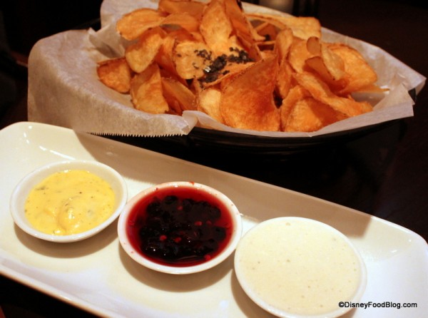 Next up were the House-Made Northwest Potato Chips with a Trio of Dips. These included Truffle Aioli, Huckleberry Honey, and a Smokey Blue.