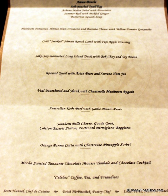 Chef Hunnel was there during our meal and he chatted with us several times during the course of the evening and even posed for pictures. I asked him about his wife since she is responsible for the Epcot Food and Wine festival, you had to see him beam with pride.