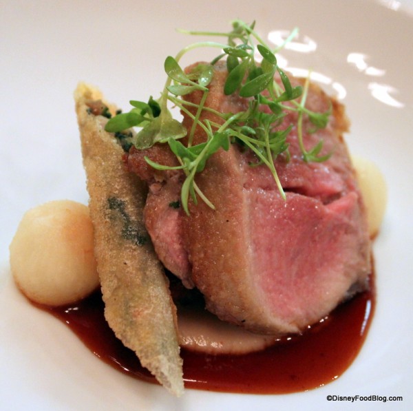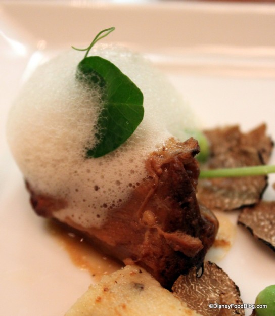…And here is the magic of the Chef’s Table. My friend had told Victoria and Albert’s that I preferred to go light on the seafood when he made the reservations. Normally, this course is salmon. But for my course, I was greeted with Sake-Soy-Marinated Long Island Duck with Bok Choy and Soy Beans. YUM!!!