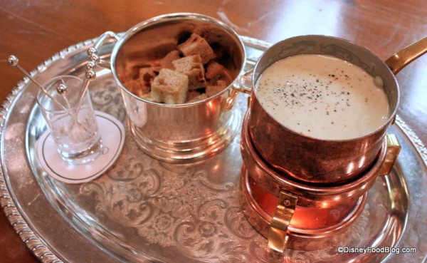 When Chef Rivera brought this Bleu Cheese Fondue to the table, it was with apologies that she couldn’t quite bring herself to serve “plastic cheese,” but she had made this fondue instead, and hoped that I would enjoy it.