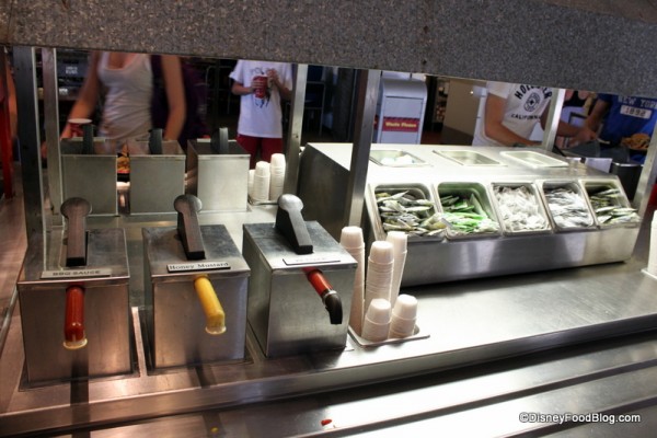 Some slightly more interesting dipping sauce options are available for you at the condiment bar, in addition to prepackaged items.