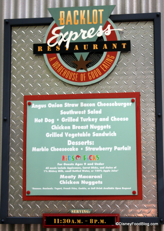 From the name alone, you can quickly deduce that this counter service mainstay is, in fact, located in the Backlot area of the theme park. (I know. What would you do without me?)