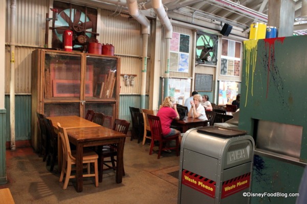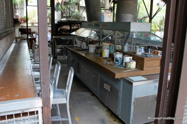 Paint splatters and storage cabinets lend to the feel. There is just so much detail to see and take in everywhere you look — and that’s really why I love to visit this spot. Lose yourself in the vision of the Imagineers and really look at it. You’ll be simply amazed at the detail.