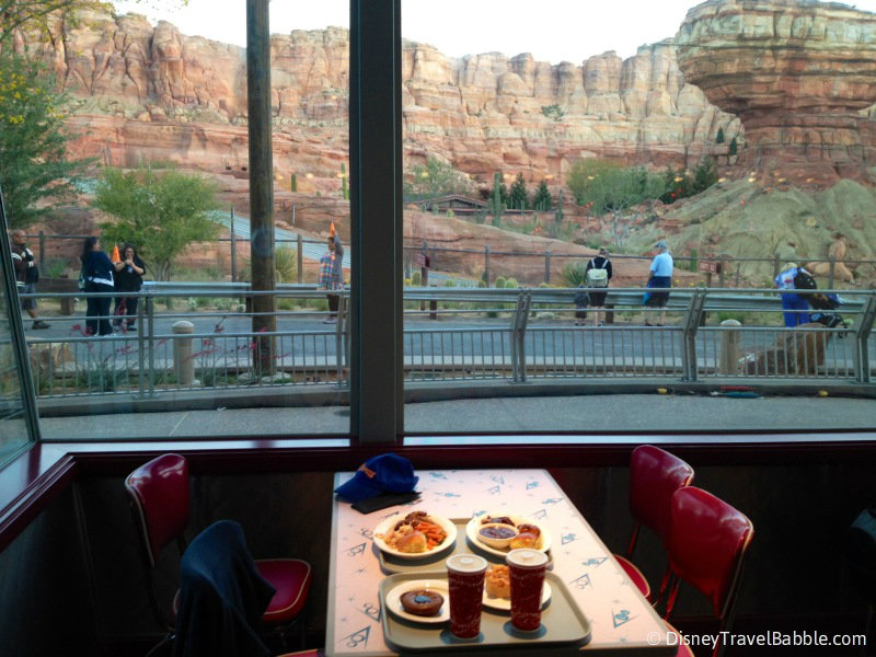 Yikes, this is a bit of a bummer of a review. We had breakfast at Flo’s last month and thoroughly enjoyed it. We both had the brioche french toast. I have a sweet tooth so I loved it. The brioche was almost actually like bread pudding. After an early morning ride on Radiator Springs Racers we found that Flo’s was nearly empty and we had no problem finding a spot in the room overlooking the RSR. What a view!