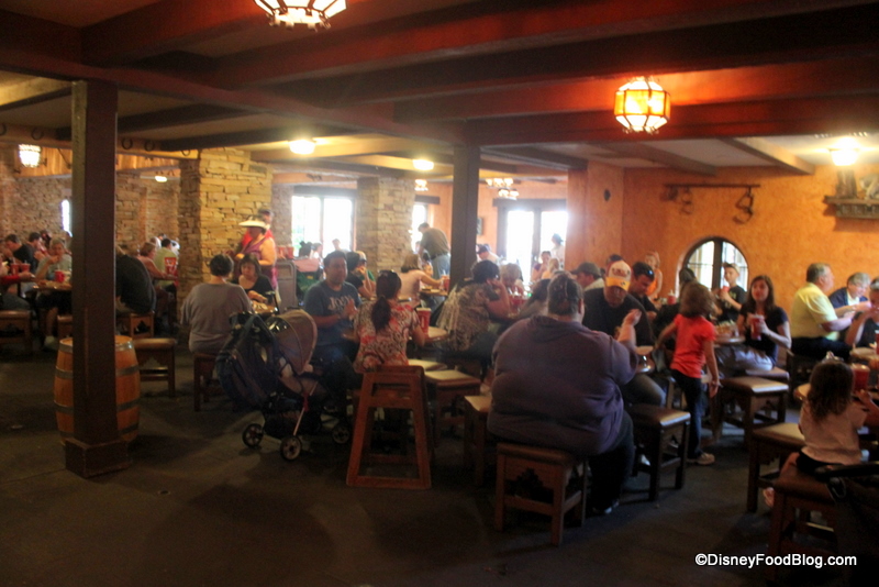 Pecos Bill Tall Tale Inn and Cafe (known to many just as “Pecos Bill’s”) in the Magic Kingdom’s Frontierland is extremely popular. I would venture a guess that this dining location and Cosmic Ray’s Starlight Cafe see the majority of the counter-service traffic in the Magic Kingdom.