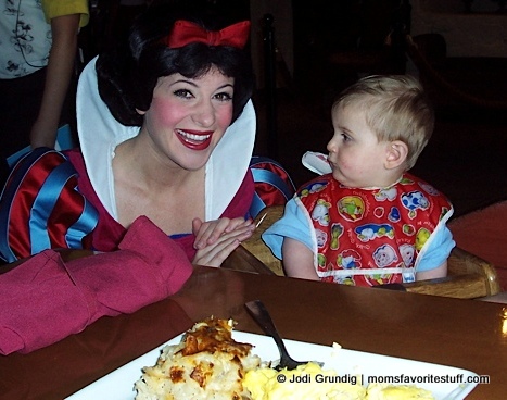 Because of this, when you’ve got infants in the group, you may want to skip the buffet service meals. Remember, this doesn’t mean that you’re out of luck for character dining. Several Disney character meals offer plated or family style food service where they bring the food to you.