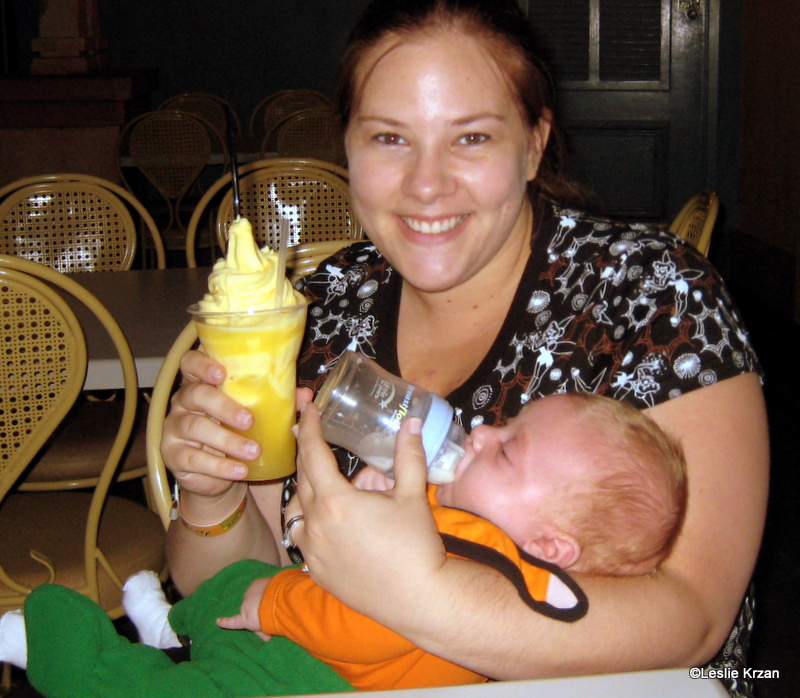 Ah, this takes me back. I remember eating at (non-Disney) restaurants when our daughter was still in the carrier stage (the pop-out kind that snaps into a stroller or a car seat base), and while it wasn’t convenient, it was doable. Your post makes me SO grateful that she’ll be almost 3-1/2 when we go in a couple of months–no high chairs, boosters, sippies, etc. 🙂