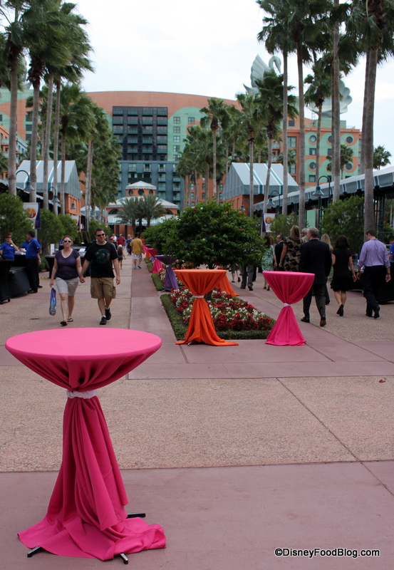 The Causeway takes its name from the location where the tasting stations are set up. This long promenade of pavement between the Swan and Dolphin hotels is transformed for the event, with high-boy tables through the middle and the booths down each side.