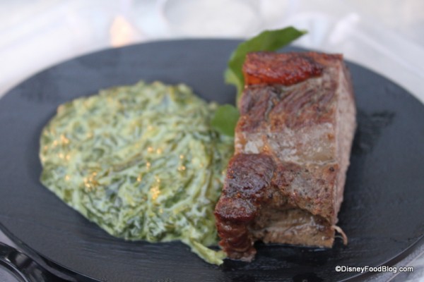 I expect this year’s offering of Carved Prime Rib and Roasted Mashed Potatoes to be every bit as delicious as this Strip Steak and Creamed Spinach from last year’s event.