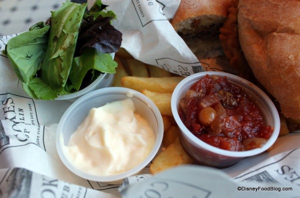 The HP steak sauce you see in the condiments picture goes great on the fries! Or at least they do when one has been “celebrating” for much of the evening. 🙂 I look forward to going back and trying them again!