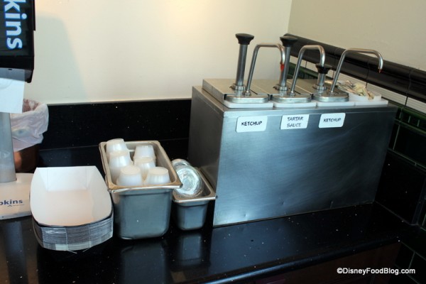 Condiments here are plentiful (my kinda place), including tartar sauce and ketchup for your fish and chips.