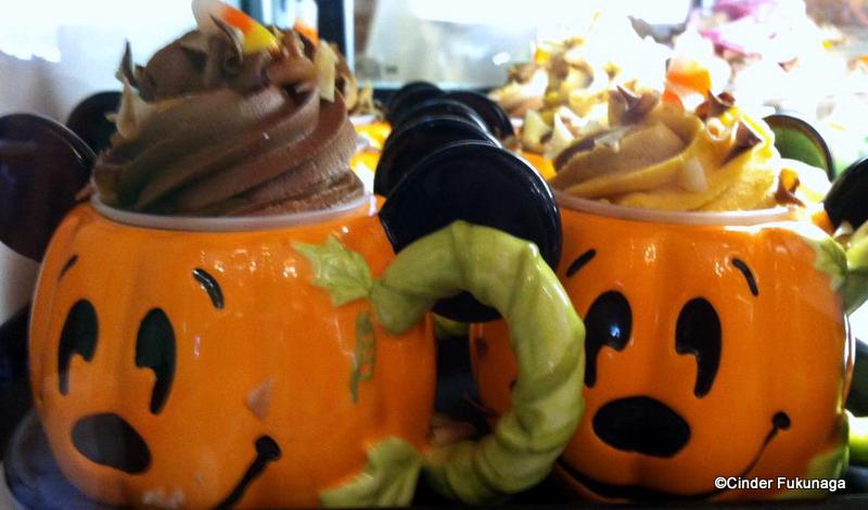 Thanks to Cinder F. for this picture of the fun Halloween Mickey mugs filled with chocolate and pumpkin mousse at Jolly Holiday Bakery at the Disneyland Resort!