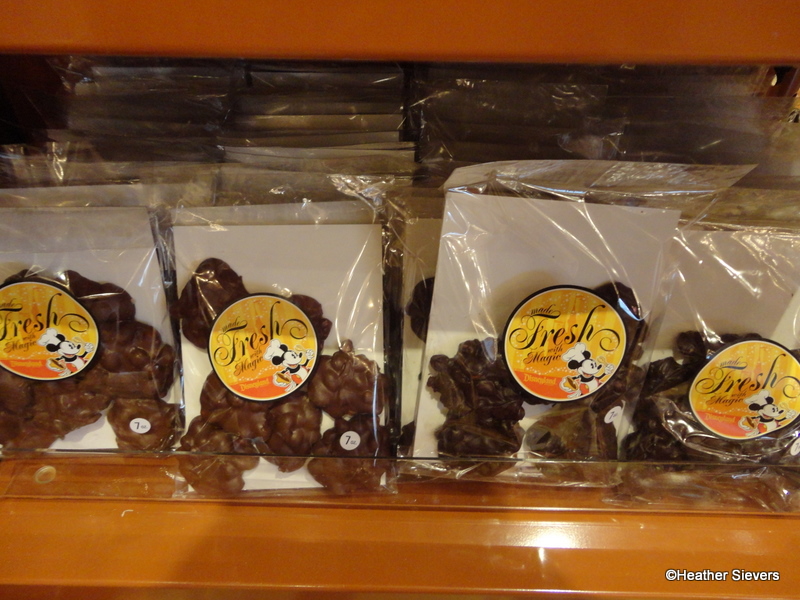Just behind the counter is an area filled with new displays and tons of treats. Here you can find all the Chip & Dale snacks your heart desires as well as two “penny” movies, brittle, clusters, toffee, Mickey “money” themed chocolates, caramel apples, and mini Rocky Road tins.