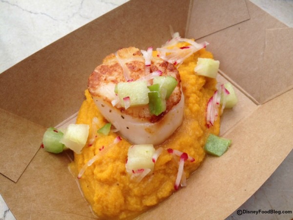 We started by trying the Seared Sea Scallop with Kumara Red Curry Puree and Apple Radish Salad. Did you know that kumara is the name used in New Zealand for sweet potatoes? I didn’t!