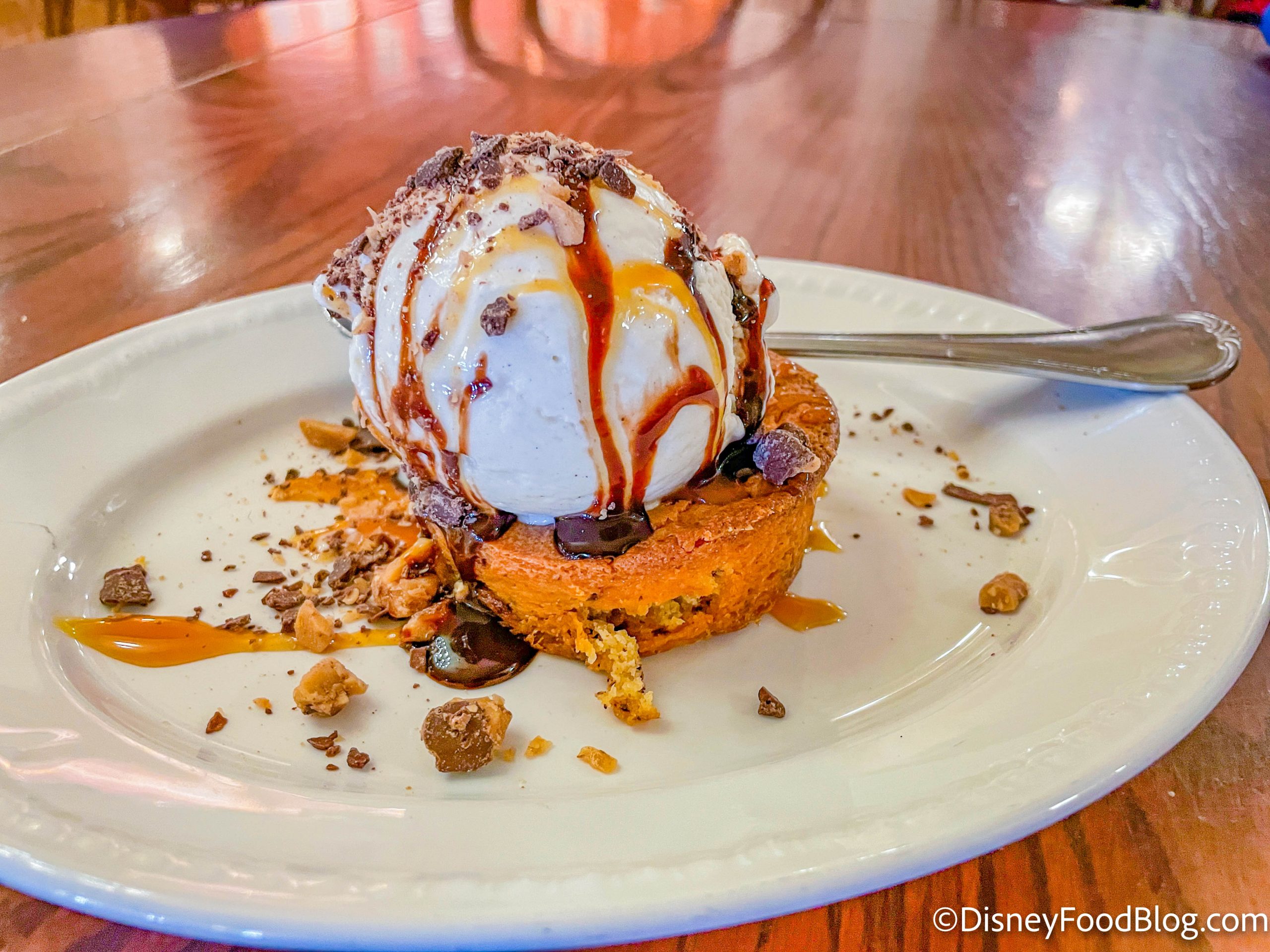 I went to Liberty Tree Tavern in Magic Kingdom back in September 2018. I had this dessert and it was divine! I was thinking it was cooked in small cast iron skillet.. but now that I think about it.. it was placed in the cast iron skillet after it was cooked, topped with vanilla ice cream, then drizzled with caramel and chocolate. I can taste it now! Can’t wait to make this recipe! My boyfriend will be so surprised!