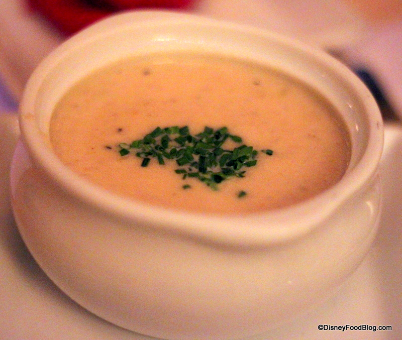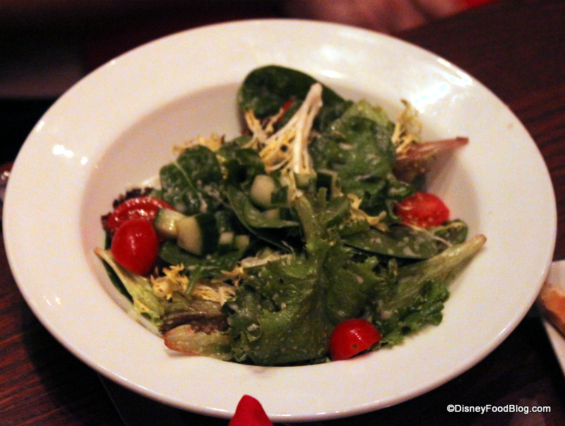 Warm bread rolls are brought to the table next, with generous pats of sea-salted butter. I have no idea if these were the same bread rolls that are served elsewhere in the Magic Kingdom (they sure do look the same), but served warm and fresh, they were delicious!