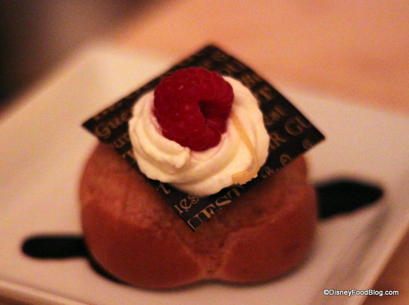 Finally, the Lemon-Raspberry Cream Puff is filled with lemon custard, and is the gluten-free, No Sugar Added dessert at Be Our Guest. I didn’t try this one, but the general thought is that it’s too lemony (which means I MUST try it, since I’m a fan of “too lemony”).