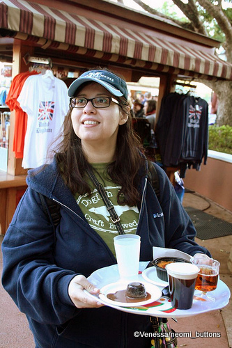 Venessa/neomi_buttons exclaims “Making A.J. proud during Food and Wine Festival!!” with a tray for “teeny foods”.