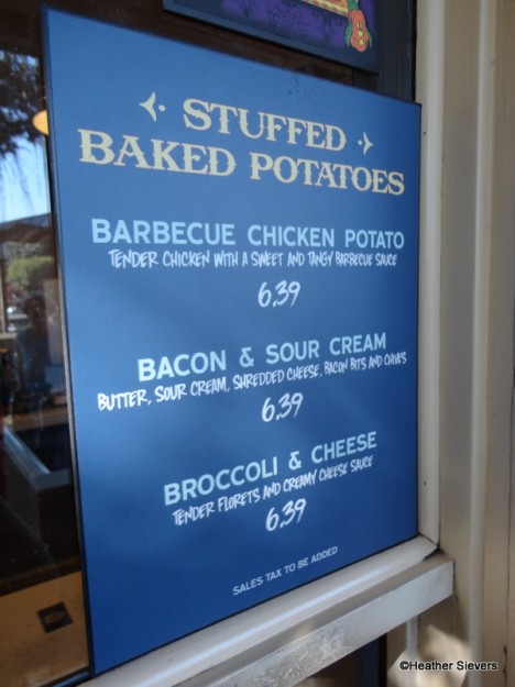 I just ate at that very table where the photo was taken of the “hidden” area on the “back” pathway over Splash, next to the dry dock. I had the bbq chicken baked potato and loved it. I’ve had it a few times over at Troubadour as well over the past year or so. It’s a great alternative to the usual theme park food items, and it’s filling.