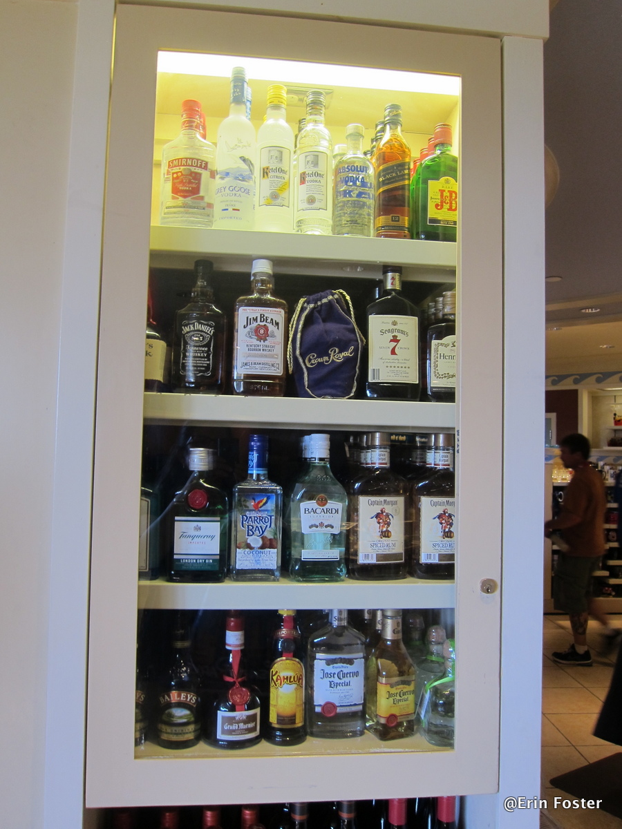 I was pleasantly surprised at how reasonable the alcohol is at the resort gift shops. My husband and I had a tipple and watched a big game in the room on our last trip! Very relaxing .