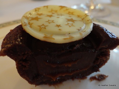 So I went for a sampler plate of a mini cherry pie, chocolate dipped brownie s’mores, a blueberry cheesecake pop, the Mickey Macaroon, mini chocolate lava cake, and the mini creme brulee.