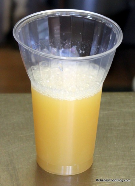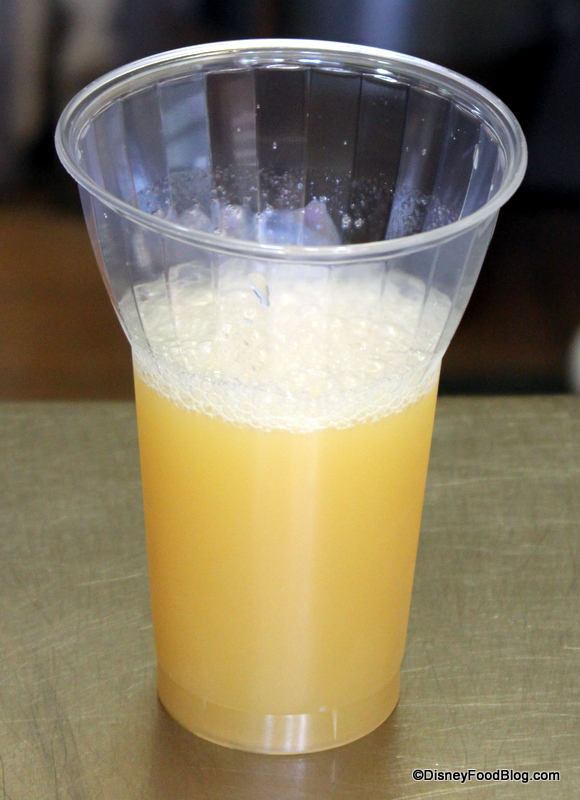 You can get the pineapple soft serve straight up, or get it in a float. To make the float, cast members start with