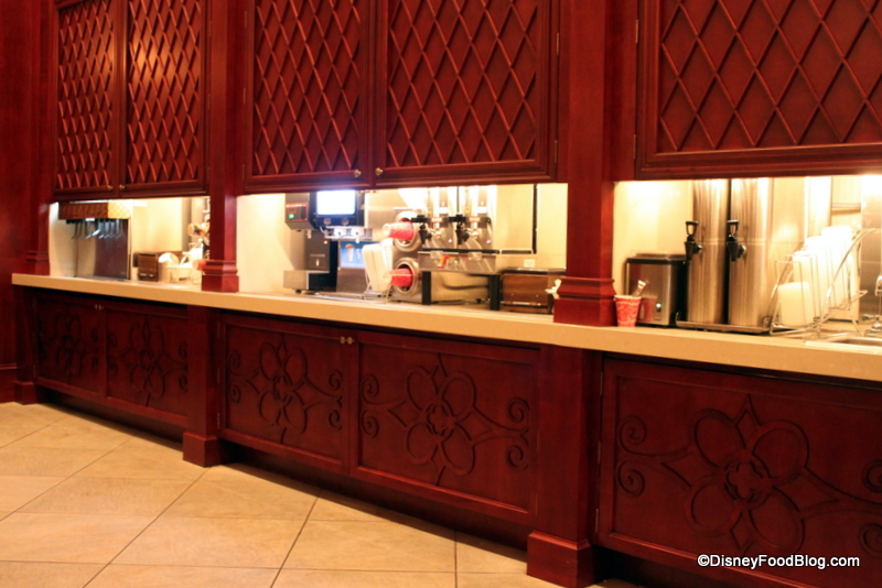 En route to your table, you’ll find the beverage stations, complete with cups, lids, straws, and condiments.
