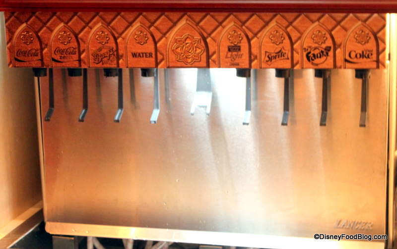 The soda fountains are exactly as impressive as in the picture (all the decor was! It was lovely!), and (in a rarity for the parks) are free refills. Since this was our first meal of our trip, I didn’t realize at the time how unusual that was, but I appreciated it even more in retrospect.