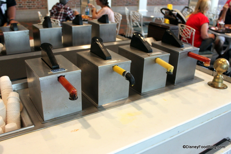 There’s nothing terribly interesting here in the way of condiments, but we did think the themeing on some of the pumps was typical of Disney detail!