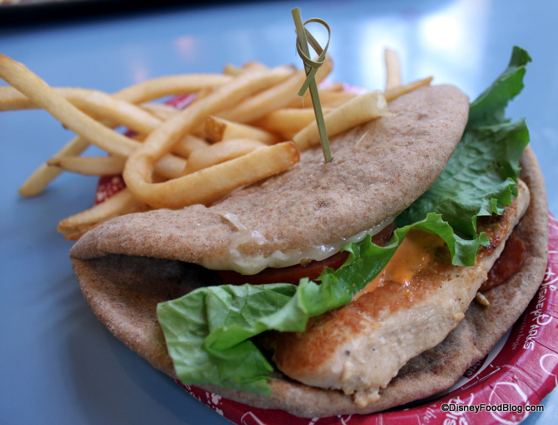 We also tried the Grilled Chicken Flatbread with Fries. It’s interesting to note that “flatbread” here = pita. Other places, it usually means pizza. So make sure to look at those pictures so you know what you’re getting!