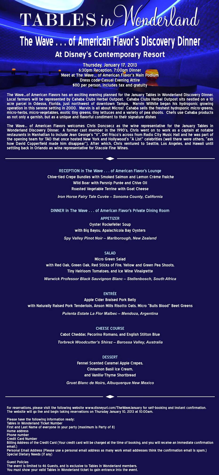 has announced a January Discovery Dinner at The Wave…of American Flavor at the Contemporary Resort for January.
