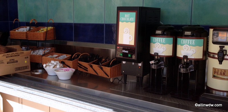 Coffee, tea, and hot chocolate are also available at the beverage station.