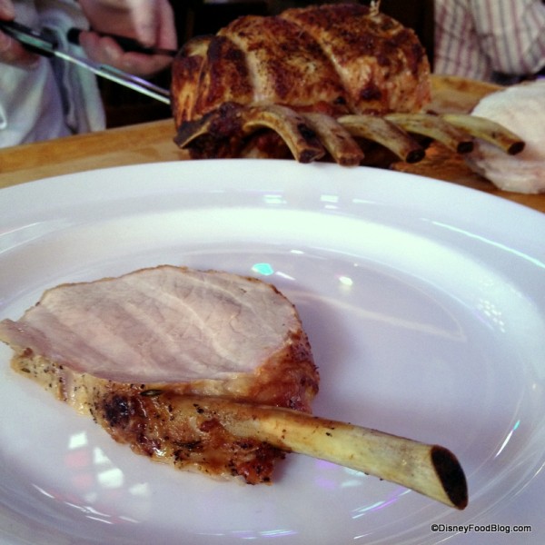 Next, servers bring out an enormous cart laden with the roast and all the trimmings. At our gathering, we were fortunate to have two different roasts: the Beef Standing Rib Roast and the Bone-In Pork Roast.
